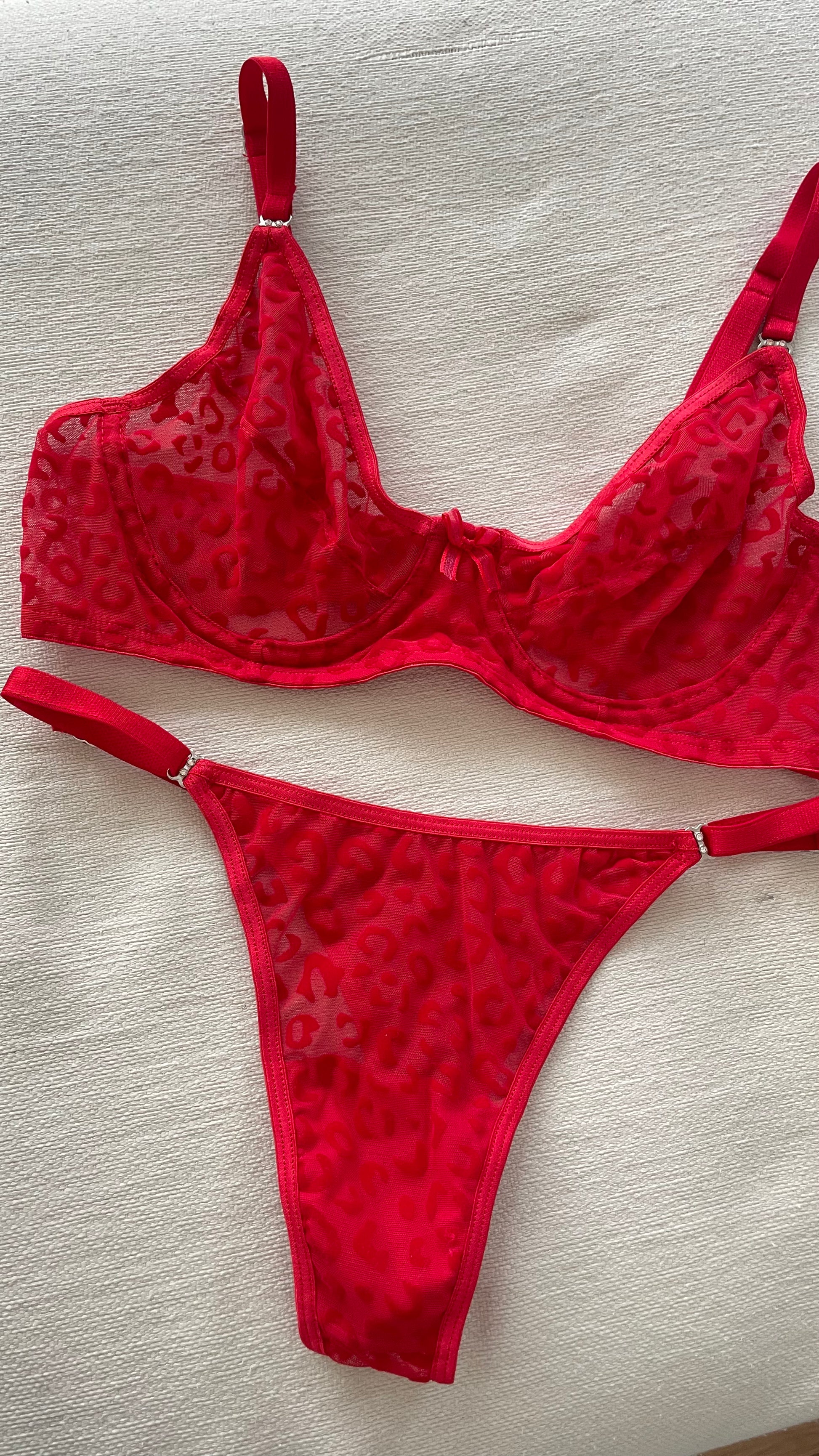 Conjunto de tul fantasía animal print con detalle strass. Corpiño con arco. Tangaless regulable.